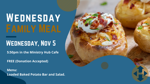 Wednesdays at 6:00pm - Men's Huddle, Women's Bible Study, Worship Rehearsal, Students, and Kids